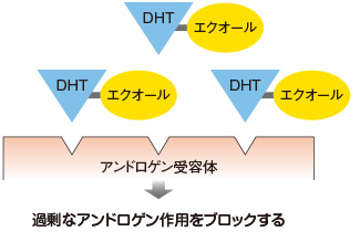 エクオールがDHT(ジヒドロテストステロン)と結合することにより、DHTが受容体にはまりこむことができない