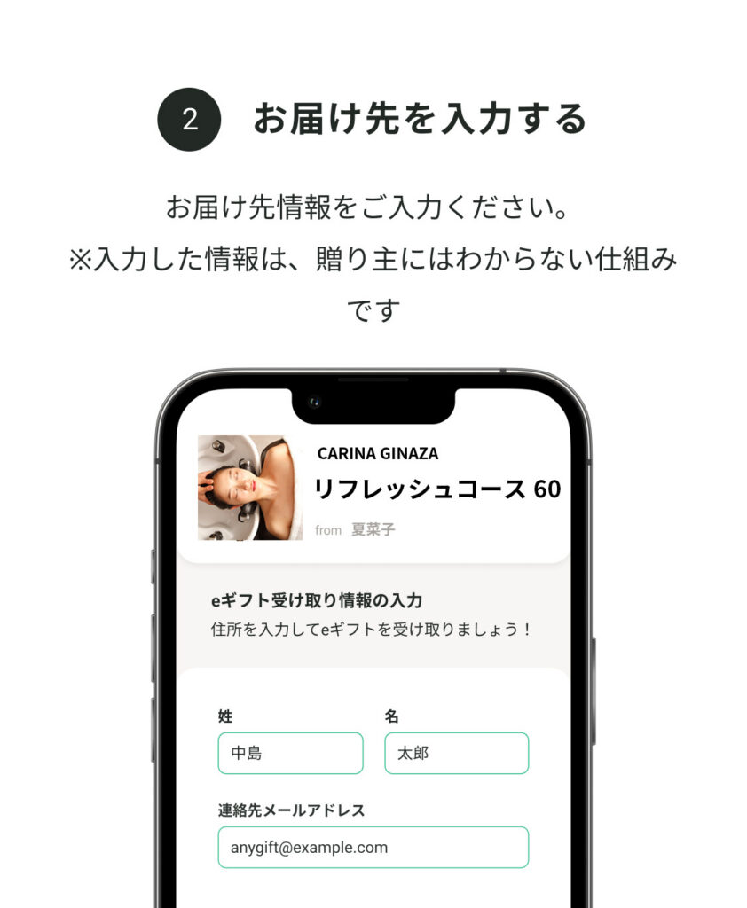 メールを介して専用URLをお送りする仕組みとなっているため、info@anygift.jpからのメールを受信できるようドメイン指定受信設定をお願いいたします。