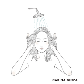 お手持ちのシャンプーで頭皮と髪を洗い、しっかりすすぎます。