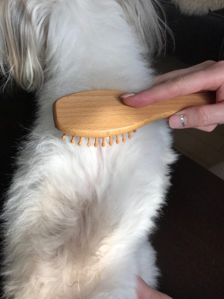 ペットの毛流れとは逆にブラッシングすると、大変気持ちよさそうに身体を伸ばします。